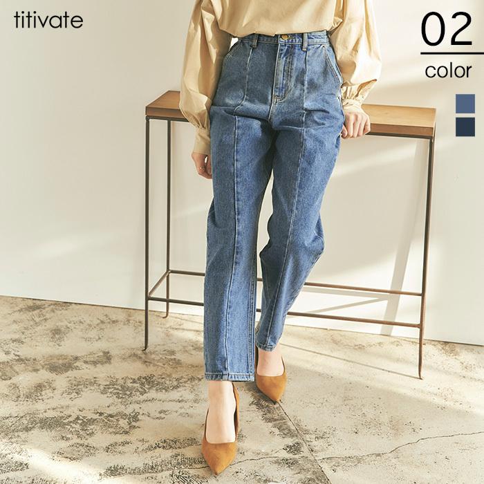 ボトムス レディース デニム パンツ ジーンズ ロング丈 ベーシック シンプル センター切替ストレートデニムパンツ 人気商品 予約 Axxp2808 Titivate 通販 Yahoo ショッピング